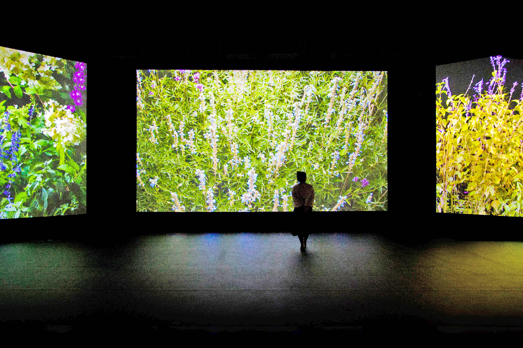 意大利艺术家夸尤拉的计算绘画动态影像作品《夏日花园》再造了一个“莫奈花园”。屏幕上的草木花卉随风摆动,变成一抹抹橙粉、嫣紫、藻绿,仿佛画家创作中流动的笔触,将观众带入唯美的印象派世界。 “‘人智共生’,就是想探讨人工智能技术与艺术相遇后,会产生怎样的新创造。”费俊说。“数字艺术特展,既是动态性的,也是沉浸式的、交互式的,充满未来感,来到这里就像是开启了一次心灵的旅行,这是一个会让观众感受到‘既是来观展也是来参展’的一个展览。”